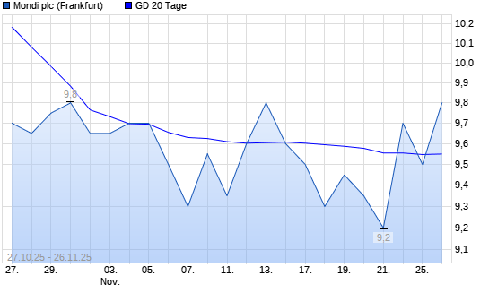 Mit dem Rücksetzer auf 9,50 EUR hat die MONDI-Aktie am 25.11.2025 die 20-Tage-Linie nach unten gekreuzt.