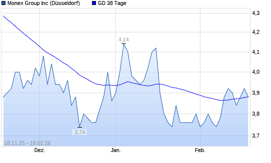 Mit dem Anstieg auf 3,94 EUR hat die MONEX GROUP-Aktie am 17.02.2026 die 38-Tage-Linie nach oben gekreuzt.