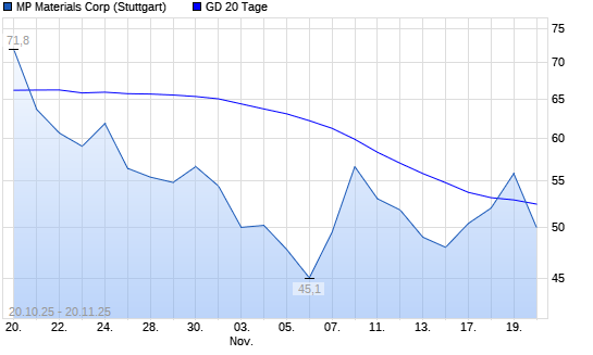 Mit dem Anstieg auf 54,60 EUR hat die MP Materials-Aktie am 19.11.2025 die 20-Tage-Linie nach oben gekreuzt.