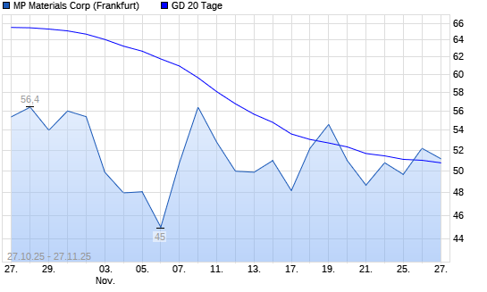 Mit dem Anstieg auf 52,20 EUR hat die MP Materials-Aktie am 26.11.2025 die 20-Tage-Linie nach oben gekreuzt.
