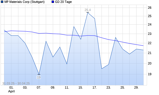 Mit dem Rücksetzer auf 21,20 EUR hat die MP Materials-Aktie am 29.04.2025 die 20-Tage-Linie nach unten gekreuzt.