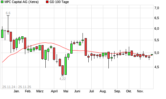 Mit dem Anstieg auf 4,87 EUR hat die MPC Capital-Aktie am 24.11.2025 die 100-Tage-Linie nach oben gekreuzt.