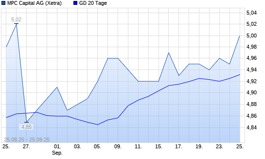 Mit dem Anstieg auf 4,91 EUR hat die MPC Capital-Aktie am 24.09.2025 die 20-Tage-Linie nach oben gekreuzt.