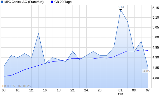 Mit dem Anstieg auf 4,98 EUR hat die MPC Capital-Aktie am 06.10.2025 die 20-Tage-Linie nach oben gekreuzt.