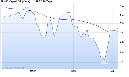 Mit dem Anstieg auf 4,77 EUR hat die MPC Capital-Aktie am 06.05.2025 die 38-Tage-Linie nach oben gekreuzt.