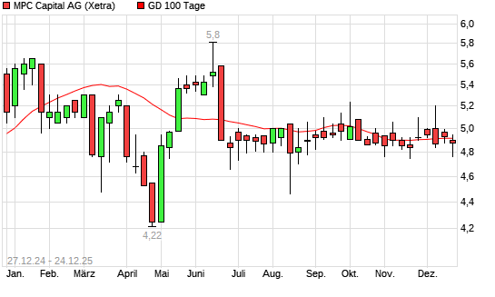 Mit dem Rücksetzer auf 4,88 EUR hat die MPC Capital-Aktie am 23.12.2025 die 100-Tage-Linie nach unten gekreuzt.