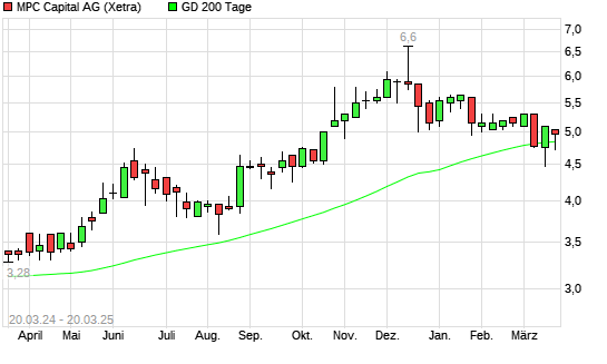 Mit dem Rücksetzer auf 4,74 EUR hat die MPC Capital-Aktie am 19.03.2025 die 200-Tage-Linie nach unten gekreuzt.
