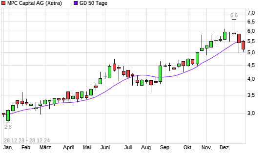 Mit dem Rücksetzer auf 5,35 EUR hat die MPC Capital-Aktie am 27.12.2024 die 50-Tage-Linie nach unten gekreuzt.