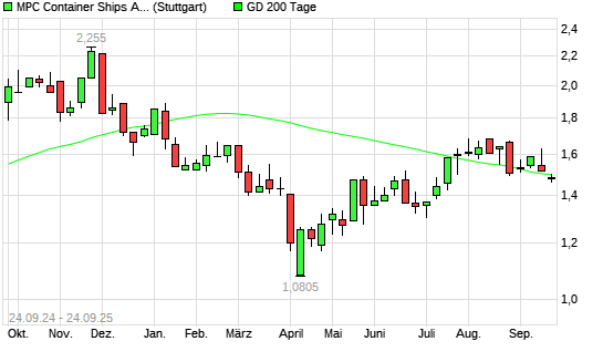 Mit dem Rücksetzer auf 1,48 EUR hat die MPC Container Ships-Aktie am 23.09.2025 die 200-Tage-Linie nach unten gekreuzt.