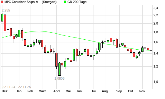 Mit dem Rücksetzer auf 1,42 EUR hat die MPC Container Ships-Aktie am 21.11.2025 die 200-Tage-Linie nach unten gekreuzt.