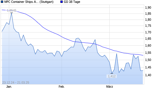 Mit dem Rücksetzer auf 1,42 EUR hat die MPC Container Ships-Aktie am 20.03.2025 die 38-Tage-Linie nach unten gekreuzt.