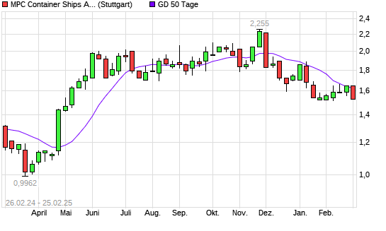 Mit dem Rücksetzer auf 1,55 EUR hat die MPC Container Ships-Aktie am 24.02.2025 die 50-Tage-Linie nach unten gekreuzt.