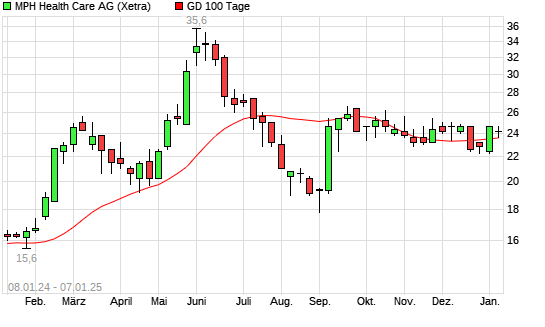 Mit dem Anstieg auf 23,60 EUR hat die MPH Health Care-Aktie am 06.01.2025 die 100-Tage-Linie nach oben gekreuzt.