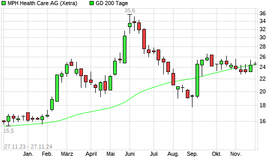 Mit dem Anstieg auf 24,40 EUR hat die MPH Health Care-Aktie am 26.11.2024 die 200-Tage-Linie nach oben gekreuzt.