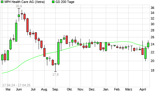 Mit dem Anstieg auf 23,10 EUR hat die MPH Health Care-Aktie am 16.04.2025 die 200-Tage-Linie nach oben gekreuzt.