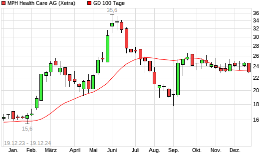 Mit dem Rücksetzer auf 22,60 EUR hat die MPH Health Care-Aktie am 18.12.2024 die 100-Tage-Linie nach unten gekreuzt.