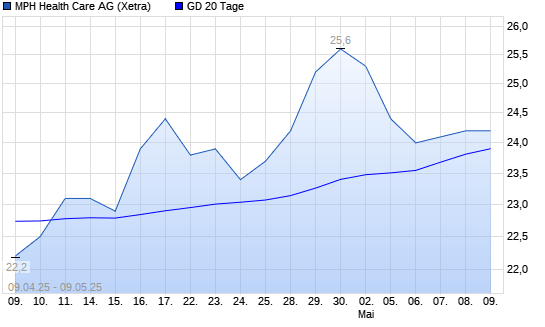 Mit dem Rücksetzer auf 23,70 EUR hat die MPH Health Care-Aktie am 08.05.2025 die 20-Tage-Linie nach unten gekreuzt.