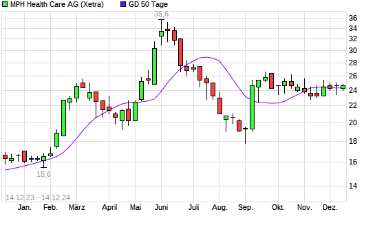 Mit dem Rücksetzer auf 23,60 EUR hat die MPH Health Care-Aktie am 13.12.2024 die 50-Tage-Linie nach unten gekreuzt.