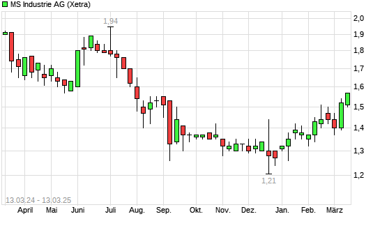 Mit dem Anstieg auf 1,57 EUR hat die MS Industrie-Aktie (ISIN DE0005855183) am 12.03.2025 ein neues 6-Monats-Hoch erreicht und damit den Kurs vom 11.03.2025 eingestellt.
