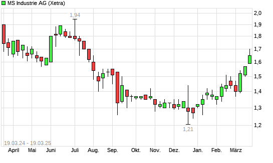 Mit dem Anstieg auf 1,60 EUR hat die MS Industrie-Aktie (ISIN DE0005855183) am 18.03.2025 ein neues 6-Monats-Hoch erreicht und damit den Kurs vom 17.03.2025 eingestellt.