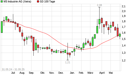 Mit dem Anstieg auf 1,55 EUR hat die MS Industrie-Aktie am 30.05.2025 die 100-Tage-Linie nach oben gekreuzt.