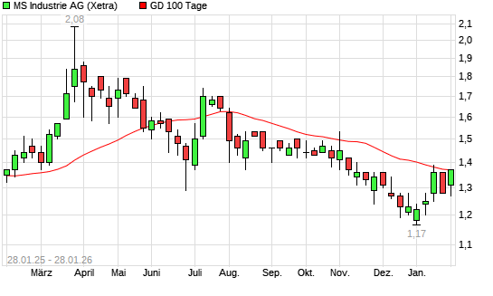 Mit dem Anstieg auf 1,34 EUR hat die MS Industrie-Aktie am 27.01.2026 die 100-Tage-Linie nach oben gekreuzt.Die MS Industrie-Aktie befindet sich seit dem 18.08.2025 im ...weiterlesen