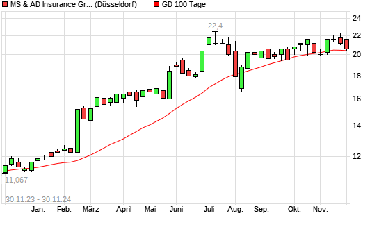 Mit dem Anstieg auf 20,80 EUR hat die MS & AD Insurance Group Holdings-Aktie am 29.11.2024 die 100-Tage-Linie nach oben gekreuzt.
