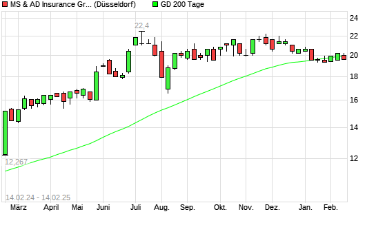 Mit dem Anstieg auf 20,20 EUR hat die MS & AD Insurance Group Holdings-Aktie am 13.02.2025 die 200-Tage-Linie nach oben gekreuzt.