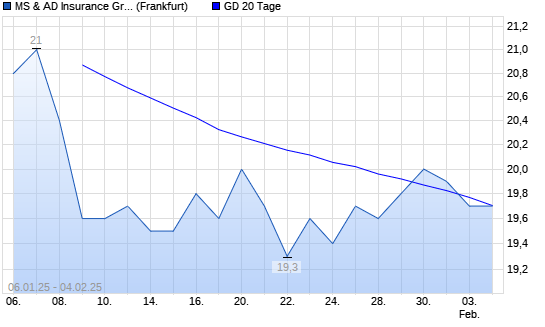 Mit dem Rücksetzer auf 19,70 EUR hat die MS & AD Insurance Group Holdings-Aktie am 03.02.2025 die 20-Tage-Linie nach unten gekreuzt.