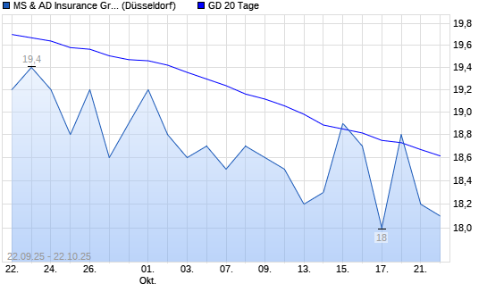 Mit dem Rücksetzer auf 18,30 EUR hat die MS & AD Insurance Group Holdings-Aktie am 21.10.2025 die 20-Tage-Linie nach unten gekreuzt.