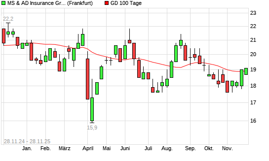 Mit dem Rücksetzer auf 18,70 EUR hat die MS & AD Insurance Group Holdings-Aktie am 27.11.2025 die 100-Tage-Linie nach unten gekreuzt.Die MS & AD Insurance Group Holdings-Aktie befindet ...weiterlesen