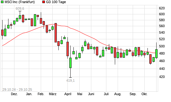 Mit dem Anstieg auf 495,20 EUR hat die MSCI Inc.-Aktie am 28.10.2025 die 100-Tage-Linie nach oben gekreuzt.