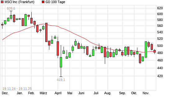 Mit dem Rücksetzer auf 482,10 EUR hat die MSCI Inc.-Aktie am 18.11.2025 die 100-Tage-Linie nach unten gekreuzt.