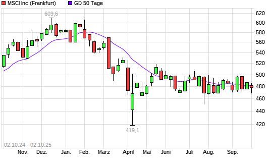 Mit dem Rücksetzer auf 474,30 EUR hat die MSCI Inc.-Aktie am 01.10.2025 die 50-Tage-Linie nach unten gekreuzt.