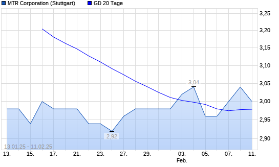 Mit dem Anstieg auf 3,02 EUR hat die MTR Corporation-Aktie am 10.02.2025 die 20-Tage-Linie nach oben gekreuzt.
