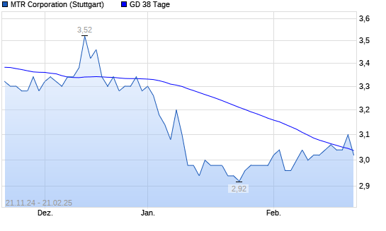 Mit dem Anstieg auf 3,06 EUR hat die MTR Corporation-Aktie am 20.02.2025 die 38-Tage-Linie nach oben gekreuzt.