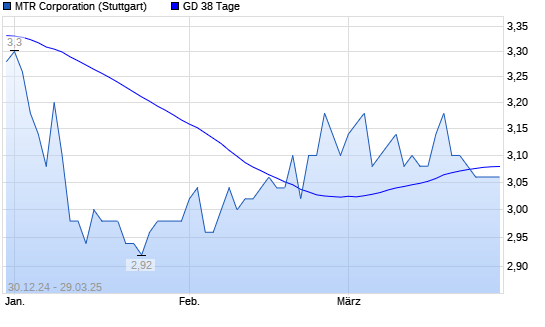 Mit dem Anstieg auf 3,12 EUR hat die MTR Corporation-Aktie am 28.03.2025 die 38-Tage-Linie nach oben gekreuzt.