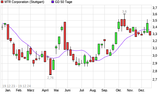 Mit dem Anstieg auf 3,34 EUR hat die MTR Corporation-Aktie am 18.12.2024 die 50-Tage-Linie nach oben gekreuzt.