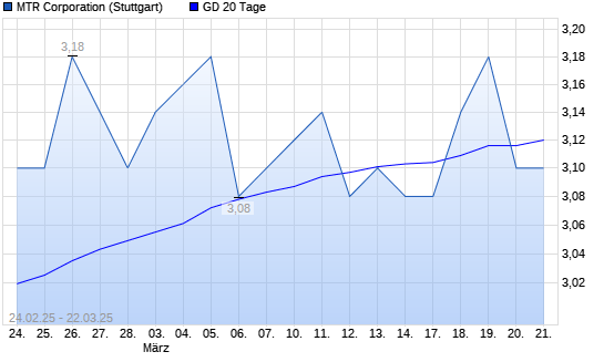Mit dem Rücksetzer auf 3,08 EUR hat die MTR Corporation-Aktie am 21.03.2025 die 20-Tage-Linie nach unten gekreuzt.