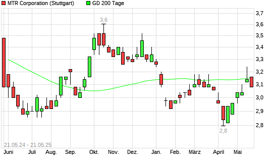 Mit dem Rücksetzer auf 3,10 EUR hat die MTR Corporation-Aktie am 20.05.2025 die 200-Tage-Linie nach unten gekreuzt.