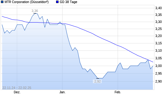 Mit dem Rücksetzer auf 3,00 EUR hat die MTR Corporation-Aktie am 21.02.2025 die 38-Tage-Linie nach unten gekreuzt.