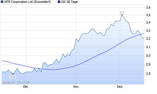 Mit dem Rücksetzer auf 3,26 EUR hat die MTR Corporation-Aktie am 15.12.2025 die 38-Tage-Linie nach unten gekreuzt.