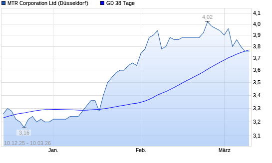 Mit dem Rücksetzer auf 3,76 EUR hat die MTR Corporation-Aktie am 09.03.2026 die 38-Tage-Linie nach unten gekreuzt.