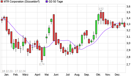 Mit dem Rücksetzer auf 3,30 EUR hat die MTR Corporation-Aktie am 16.12.2024 die 50-Tage-Linie nach unten gekreuzt.