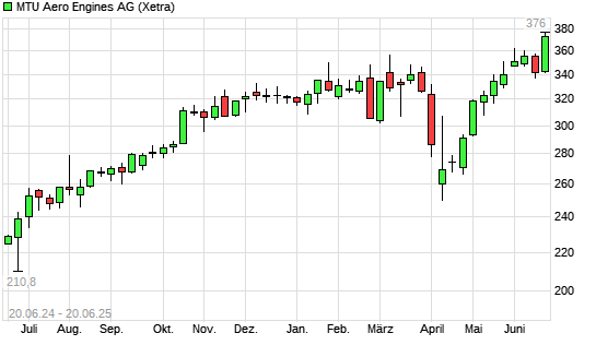 Mit dem Anstieg auf 366,40 EUR hat die MTU Aero Engines-Aktie (ISIN DE000A0D9PT0) am 19.06.2025 ein neues All-Time-High erreicht und damit den Kurs vom 18.06.2025 eingestellt.
