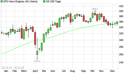 Mit dem Anstieg auf 357,40 EUR hat die MTU Aero Engines-Aktie am 19.12.2025 die 200-Tage-Linie nach oben gekreuzt.