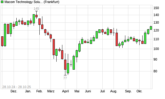 Mit dem Anstieg auf 125,00 EUR hat die Macom Technology-Aktie (ISIN US55405Y1001) am 27.10.2025 ein neues 6-Monats-Hoch erreicht und damit den Kurs vom 30.06.2025 eingestellt.