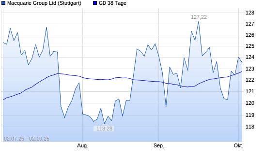 Mit dem Anstieg auf 123,34 EUR hat die Macquarie Group-Aktie am 01.10.2025 die 38-Tage-Linie nach oben gekreuzt.