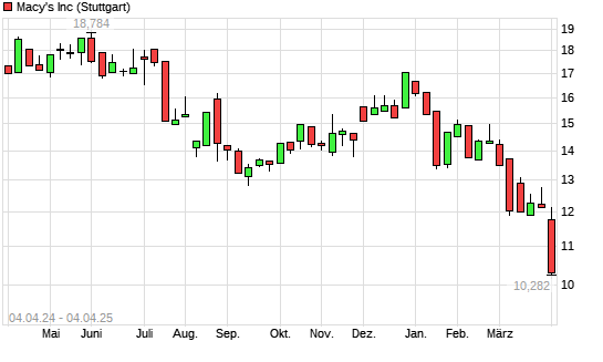 Mit dem Rücksetzer auf 10,36 EUR hat die Macy's-Aktie (ISIN US55616P1049) am 03.04.2025 ein neues 12-Monats-Tief erreicht und damit den Kurs vom 31.03.2025 eingestellt.