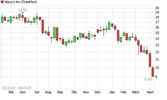Mit dem Rücksetzer auf 9,96 EUR hat die Macy's-Aktie (ISIN US55616P1049) am 07.04.2025 ein neues 3-Jahres-Tief erreicht und damit den Kurs vom 13.11.2023 eingestellt.